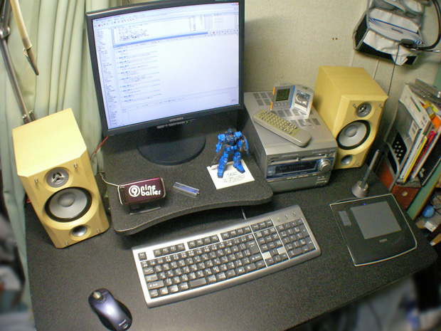 昔から使ってるスピーカーをどけてコンポを丸々机に載せちゃったぜ
