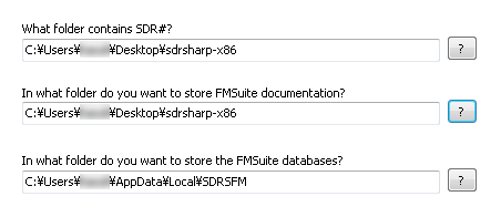 「Software Locations」は上2つにSDRSharp.exeの入っているフォルダを一番下は周波数メモリーのデータベースを保存するフォルダを指定します。後はNext繰り返してインストール完了です。