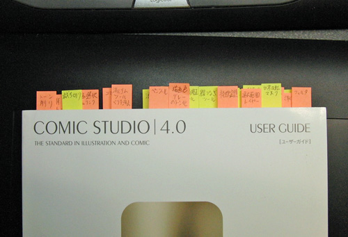 って聞いたので、とにかくマニュアルを一通り読んでよく使いそうな項目には付箋を貼りました。